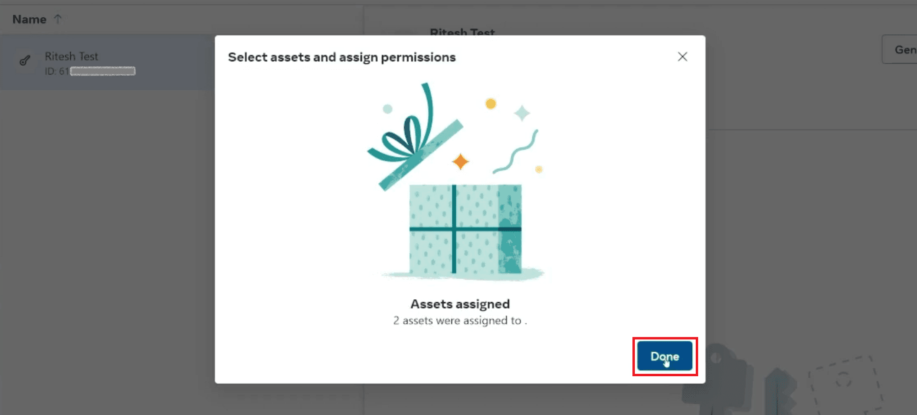 A confirmation pop-up will appear ("Assets assigned"). Click Done.